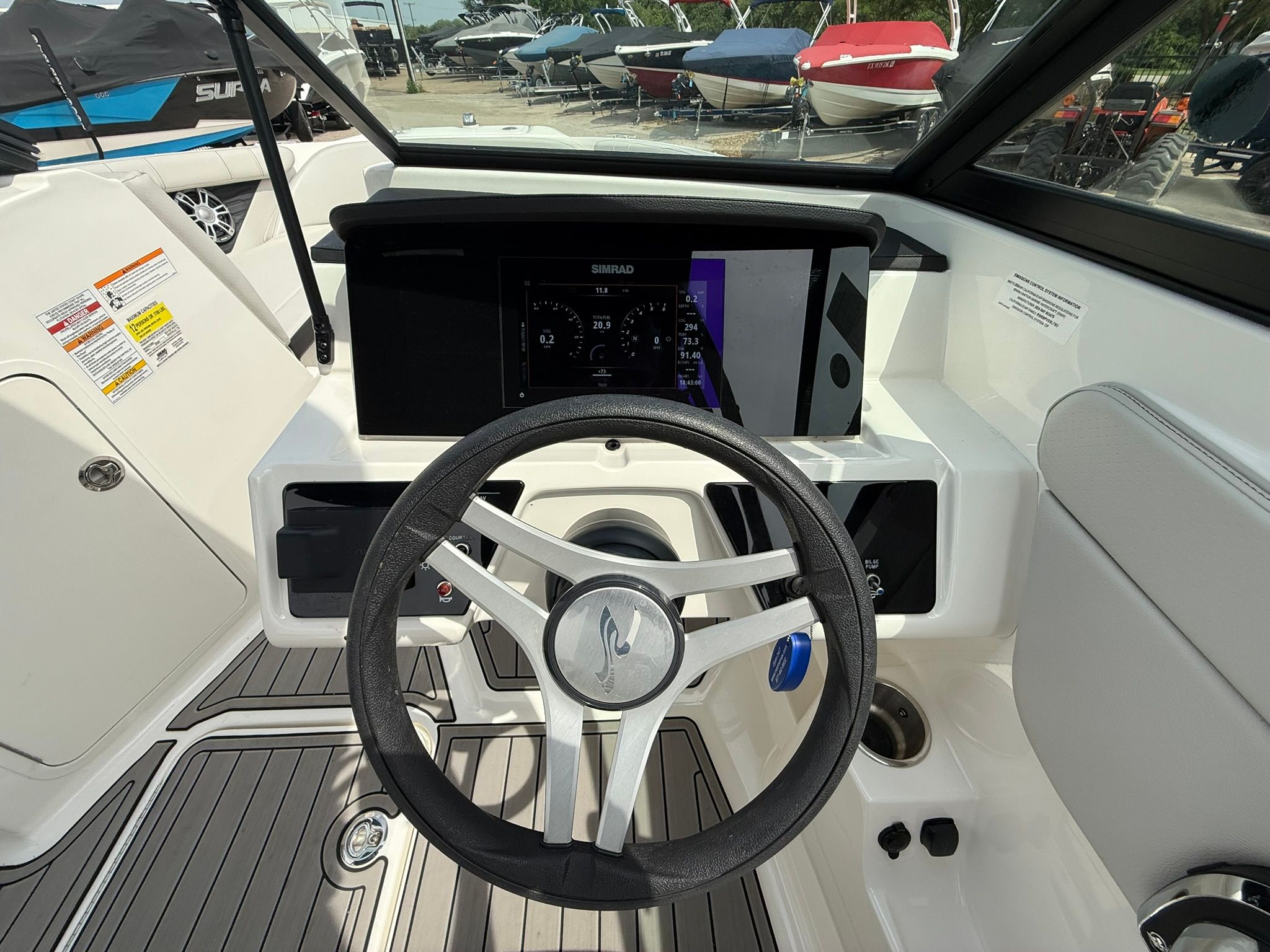 Durable, non-slip flooring throughout the cockpit and swim platform—soft underfoot and easy to clean.