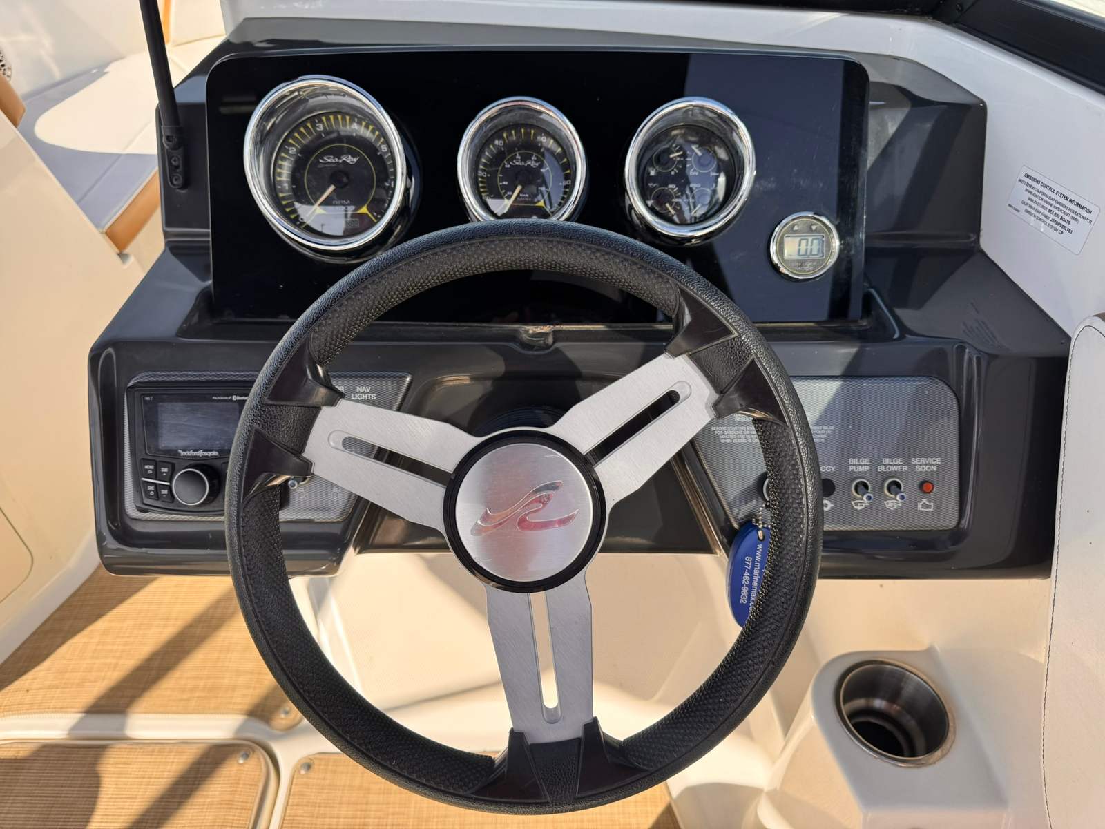Durable marine flooring throughout the boat that is easy to remove and clean.