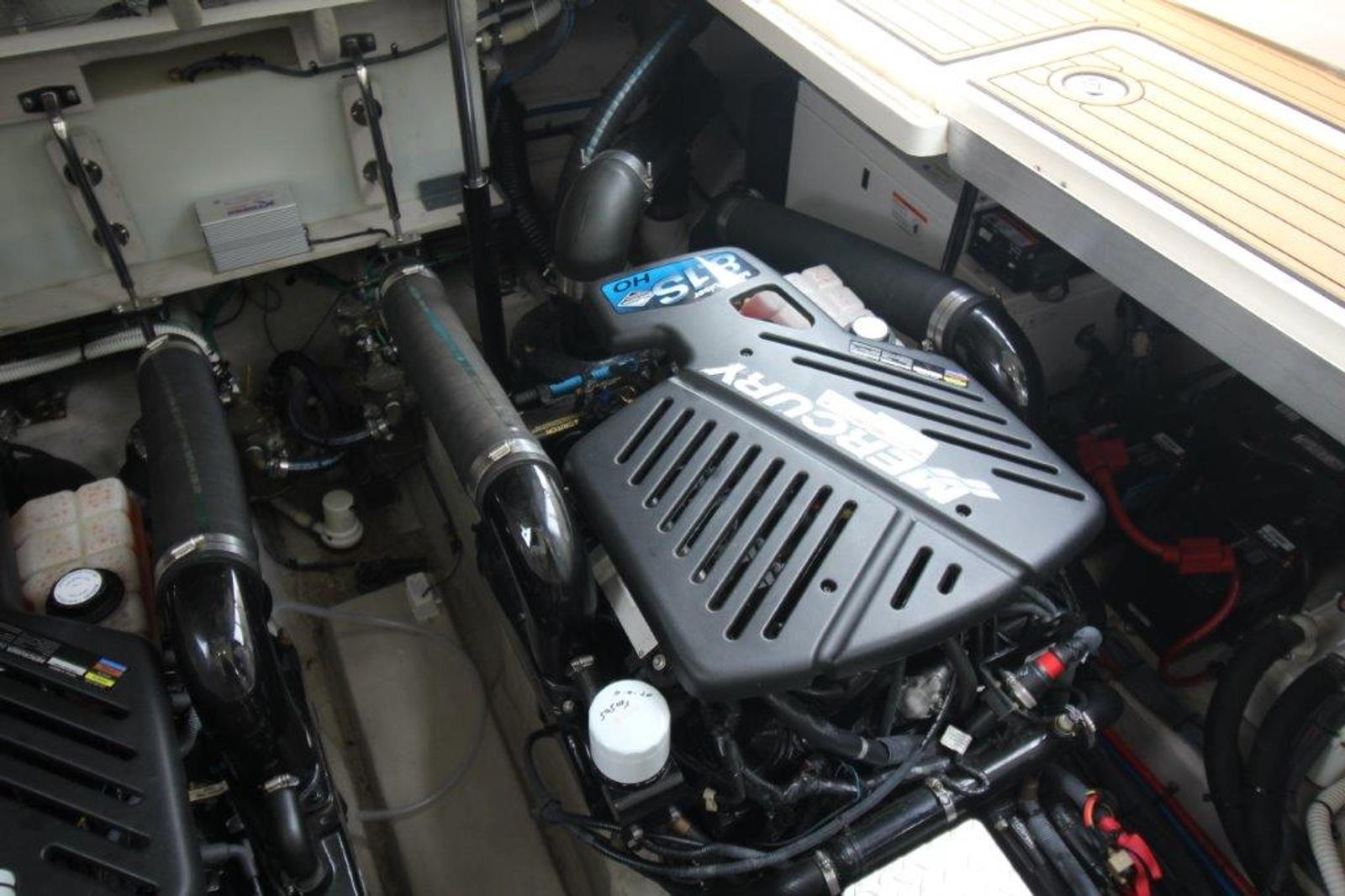 She is powered by twin MerCruiser 8.1S HO engines with 650 hours, paired with a new Westerbeke generator (only 187 hours) that runs strong. Docking is made simple with a bow thruster equipped with new batteries, while navigation is handled by a Raymarine E120 with radar and autopilot.