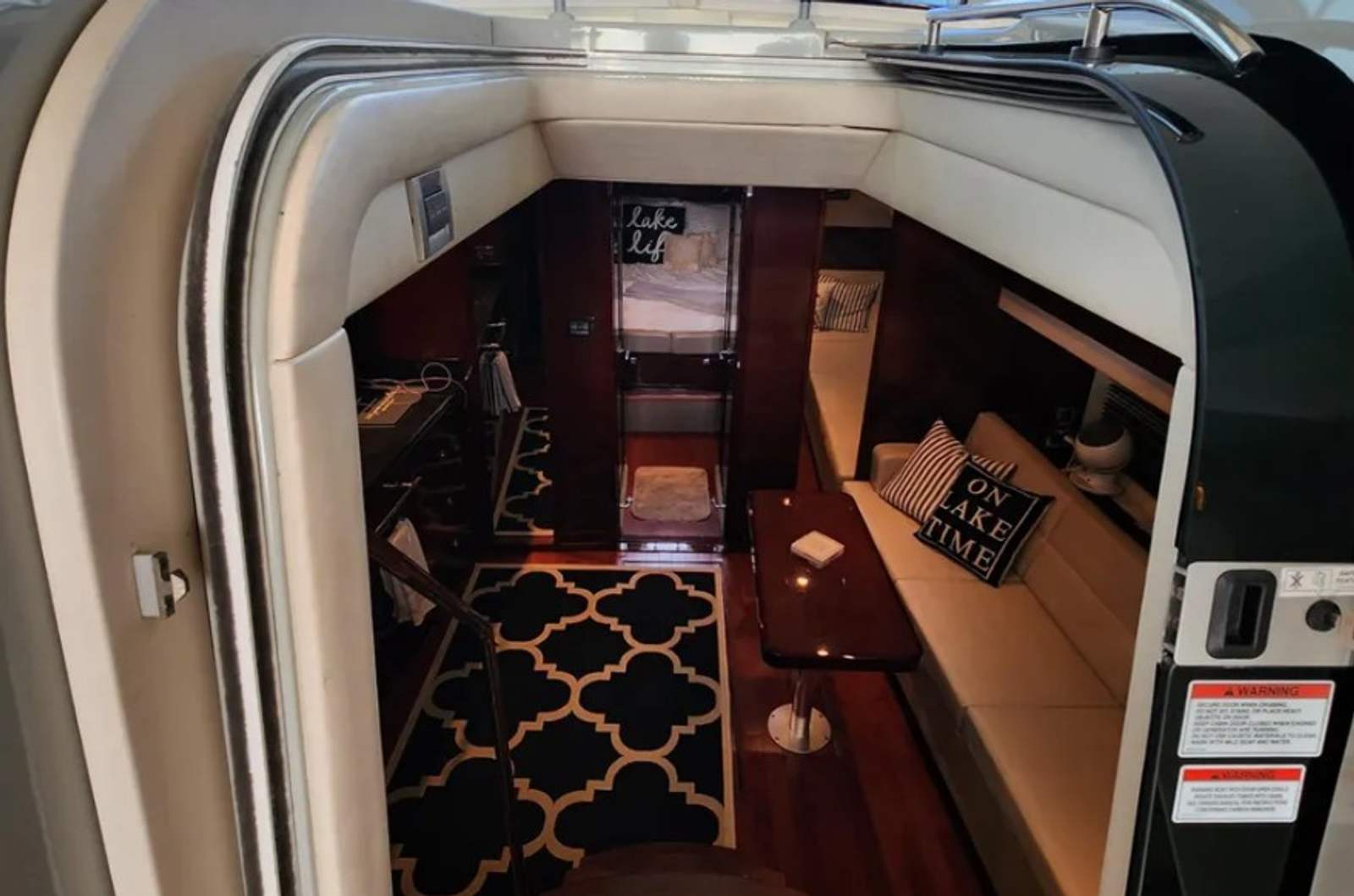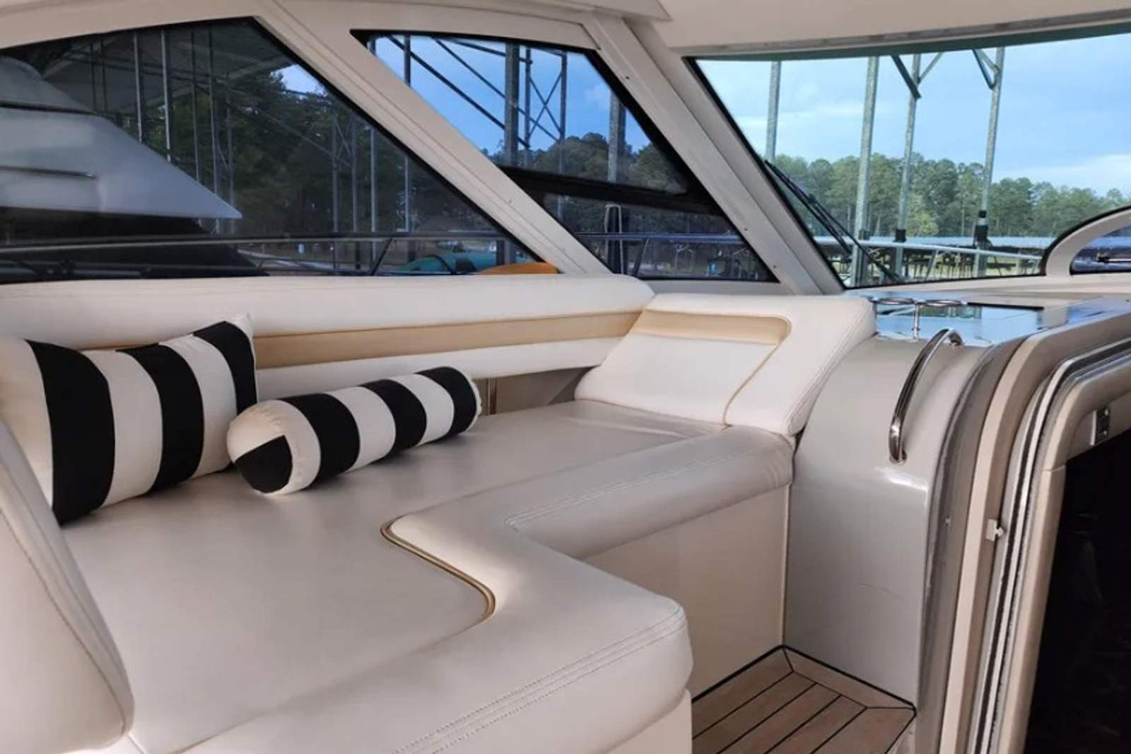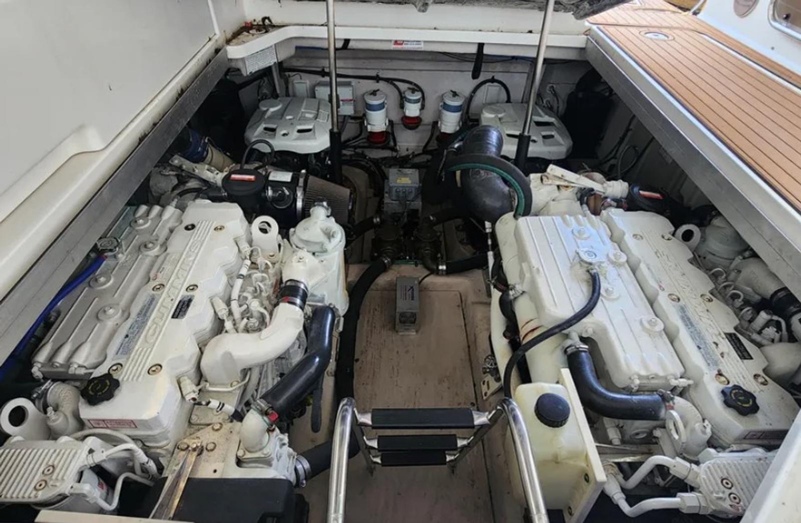 Powered by twin Cummins QSB 480 diesel engines with pod drives, this Sundancer delivers confident performance and remarkable joystick maneuverability, especially in tight spaces or while docking. Both pods have been recently serviced. The engines have approximately 800 hours, and the 15kW Onan generator has around 600 hours, with recent service completed. The boat has also been buffed and waxed on all fiberglass surfaces.