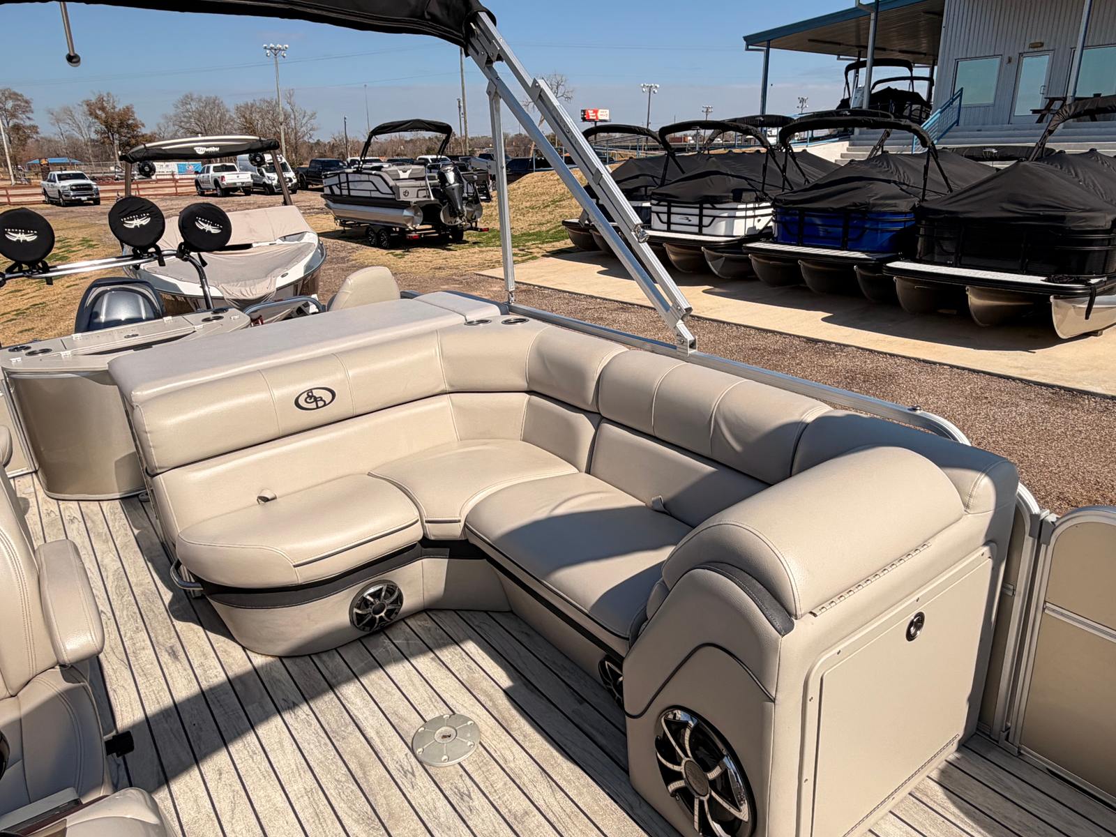 Powering this South Bay 522 FCR is a single, robust engine delivering 150 horsepower. With only 292 engine hours, this pontoon boat offers reliable performance and plenty of life left for future adventures. The 150 HP engine provides the perfect balance of speed and efficiency, allowing you to glide smoothly across the water, whether you are towing a tube, heading to your favorite fishing spot, or simply enjoying a sunset cruise. The responsive handling and steady ride make this pontoon boat a joy to operate, even for those new to boating.