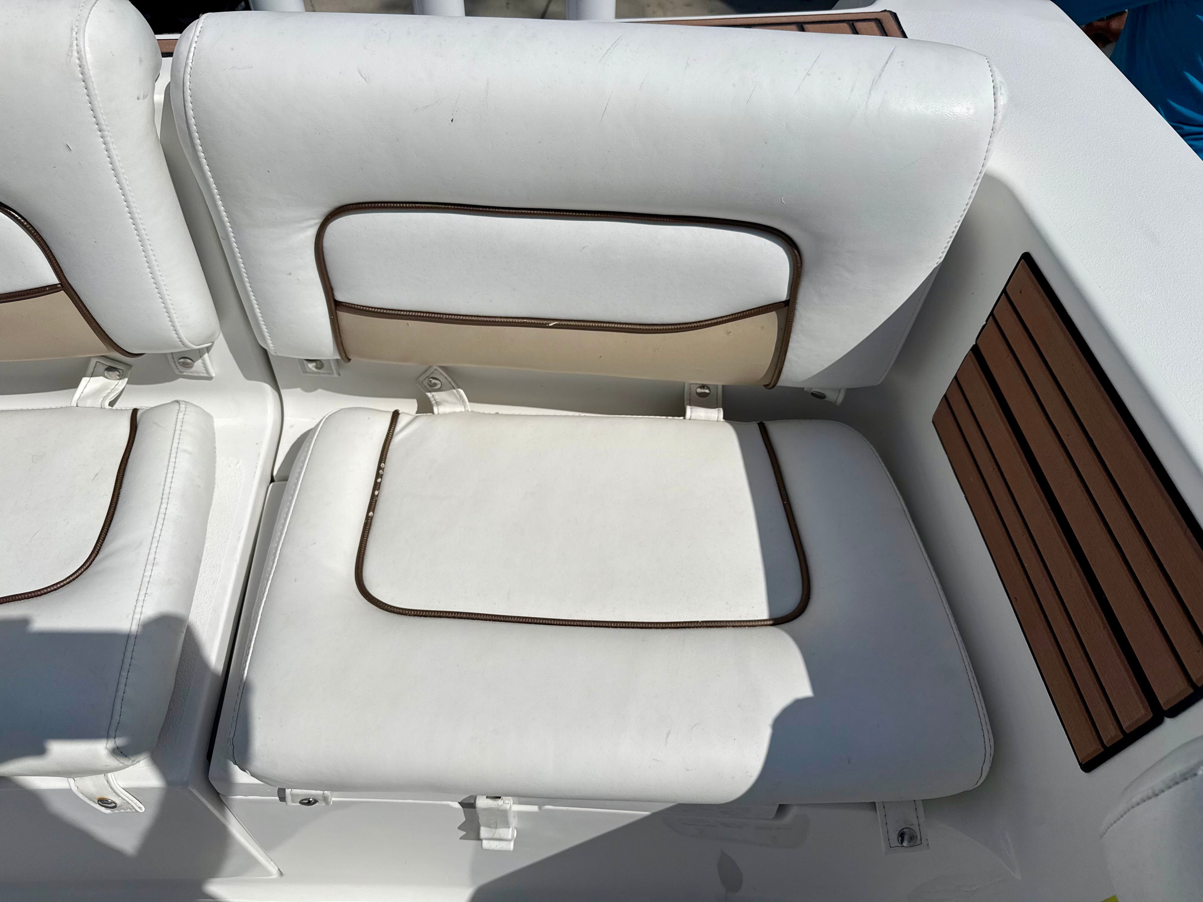 Comfort and entertainment are well covered thanks to the Infinity sound system with bow-to-stern speakers, delivering crisp audio throughout the boat whether you’re anchored at the sandbar or running offshore. An upgraded T-top provides ample shade and adds to the overall look and functionality of the vessel, making long days on the water more enjoyable.