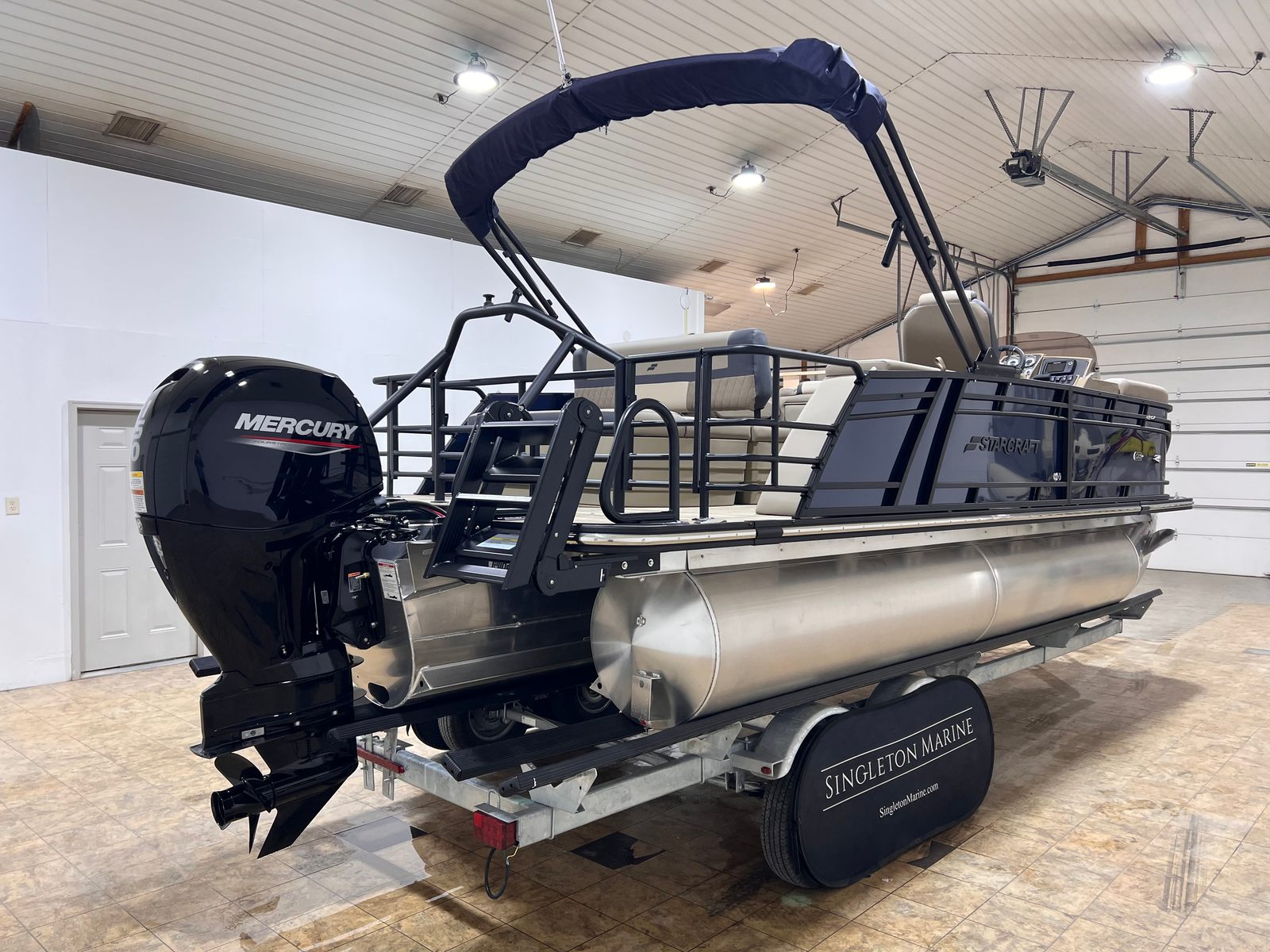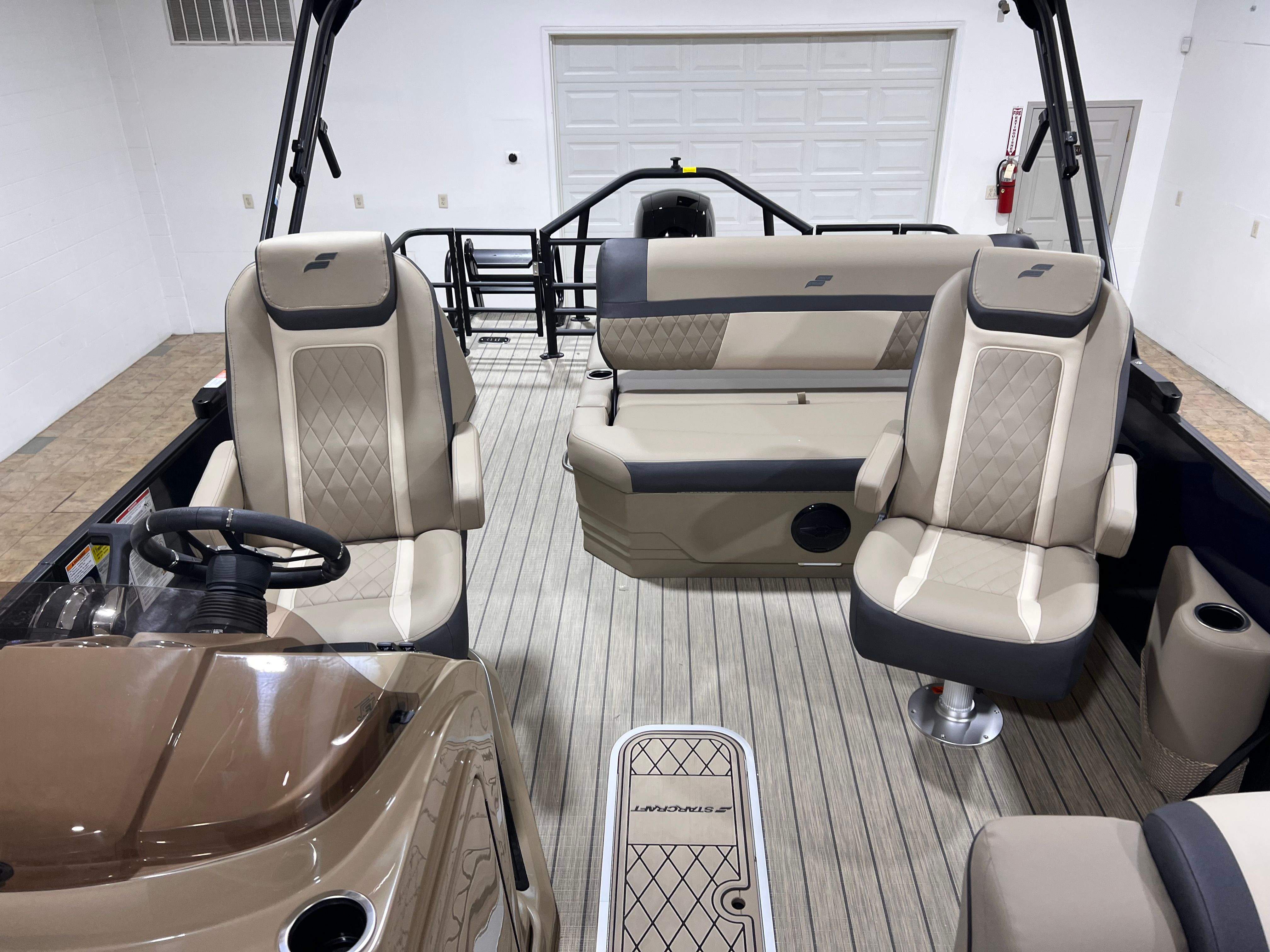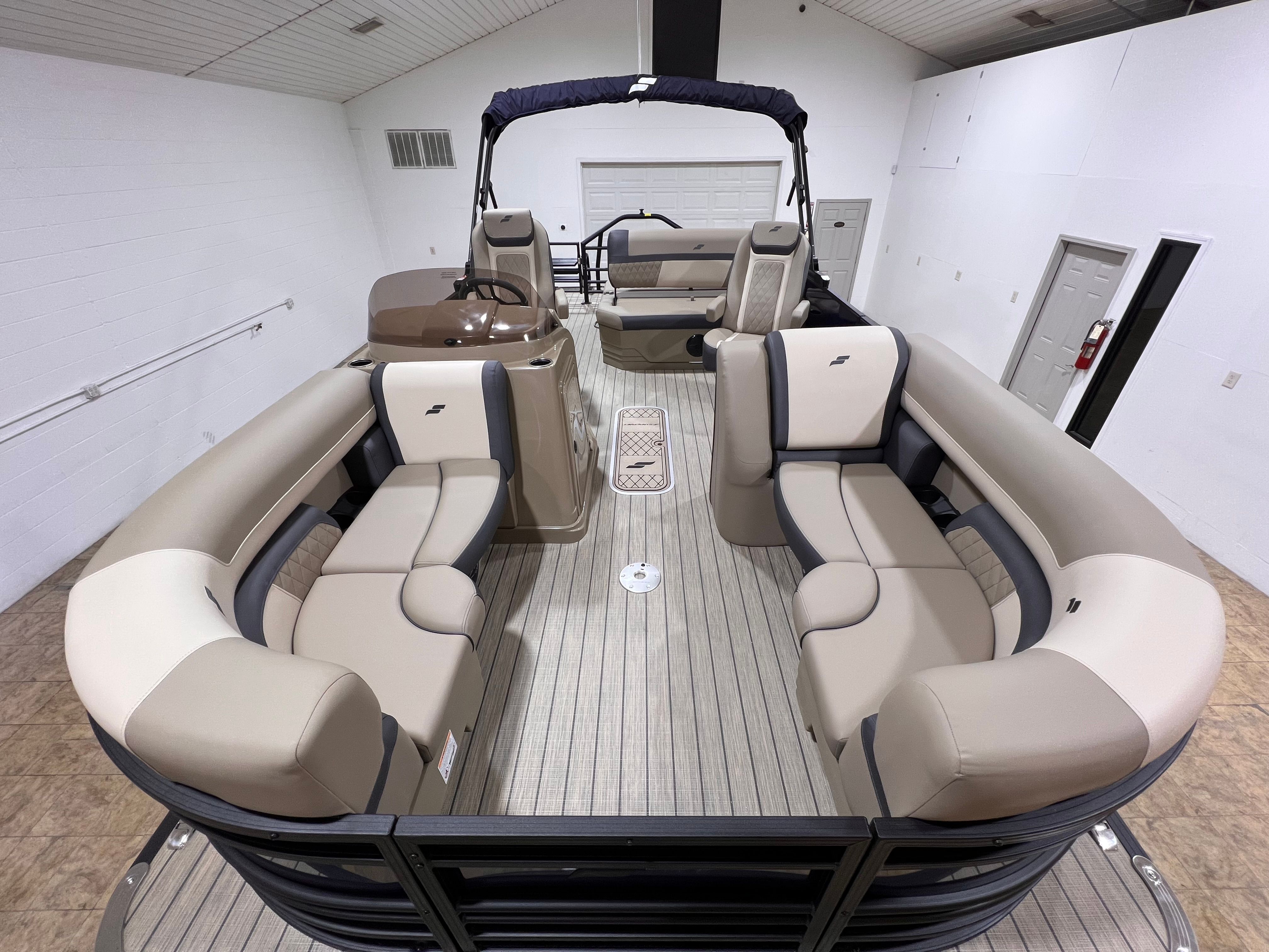 The Starcraft EXS 1 Q DH is loaded with special features that set it apart from other pontoon boats for sale. The Mercury 150XL 4S engine ensures reliable power and efficiency, while the striking blue panel adds a touch of modern elegance. The Stern Rail Enclosure Package with an extended deck provides additional space and security, making it ideal for social gatherings or relaxing in privacy.The HMX PR25 Performance Package, combined with the Outer Tube HD 19'x25 Port with Strake, delivers enhanced buoyancy and stability, allowing for smoother rides even in choppier waters. In-floor storage offers ample space for your gear, keeping the deck clutter-free and organized. The absence of tube paint and the addition of skirt trim and hat channel heavy exterior components contribute to the boat's durability and sleek appearance. Tube hardware 3 ensures robust construction, giving you peace of mind as you embark on your aquatic adventures.