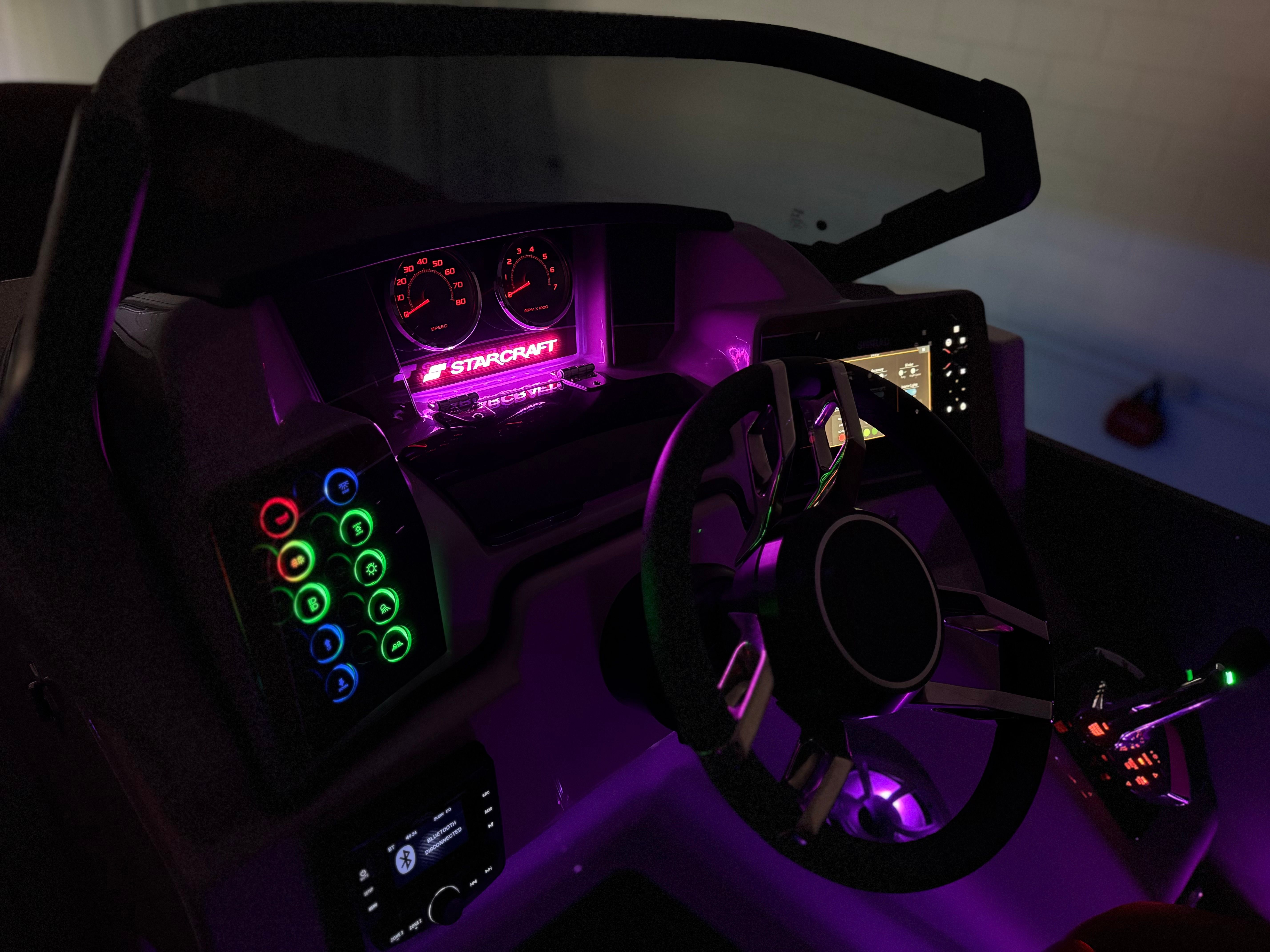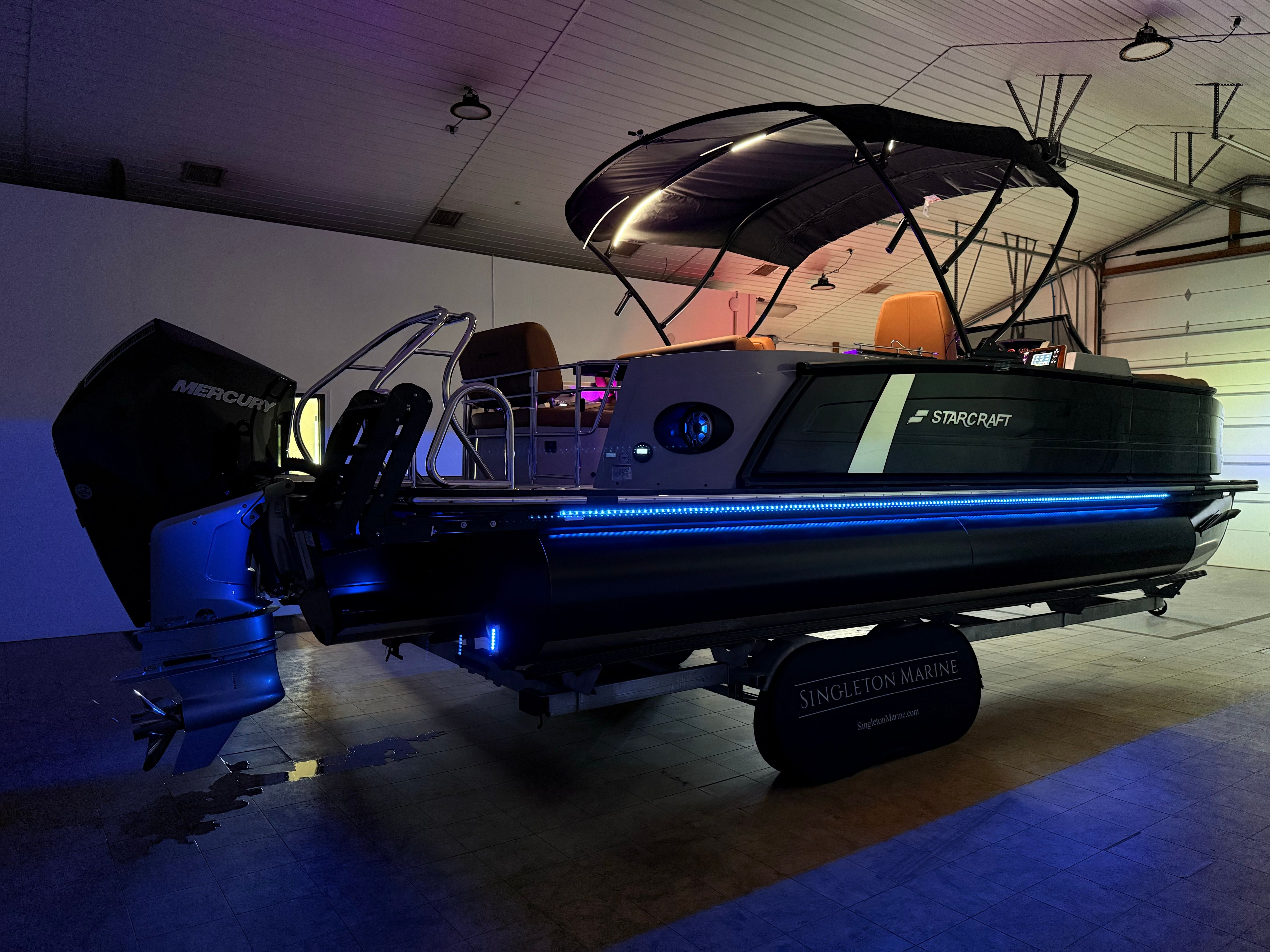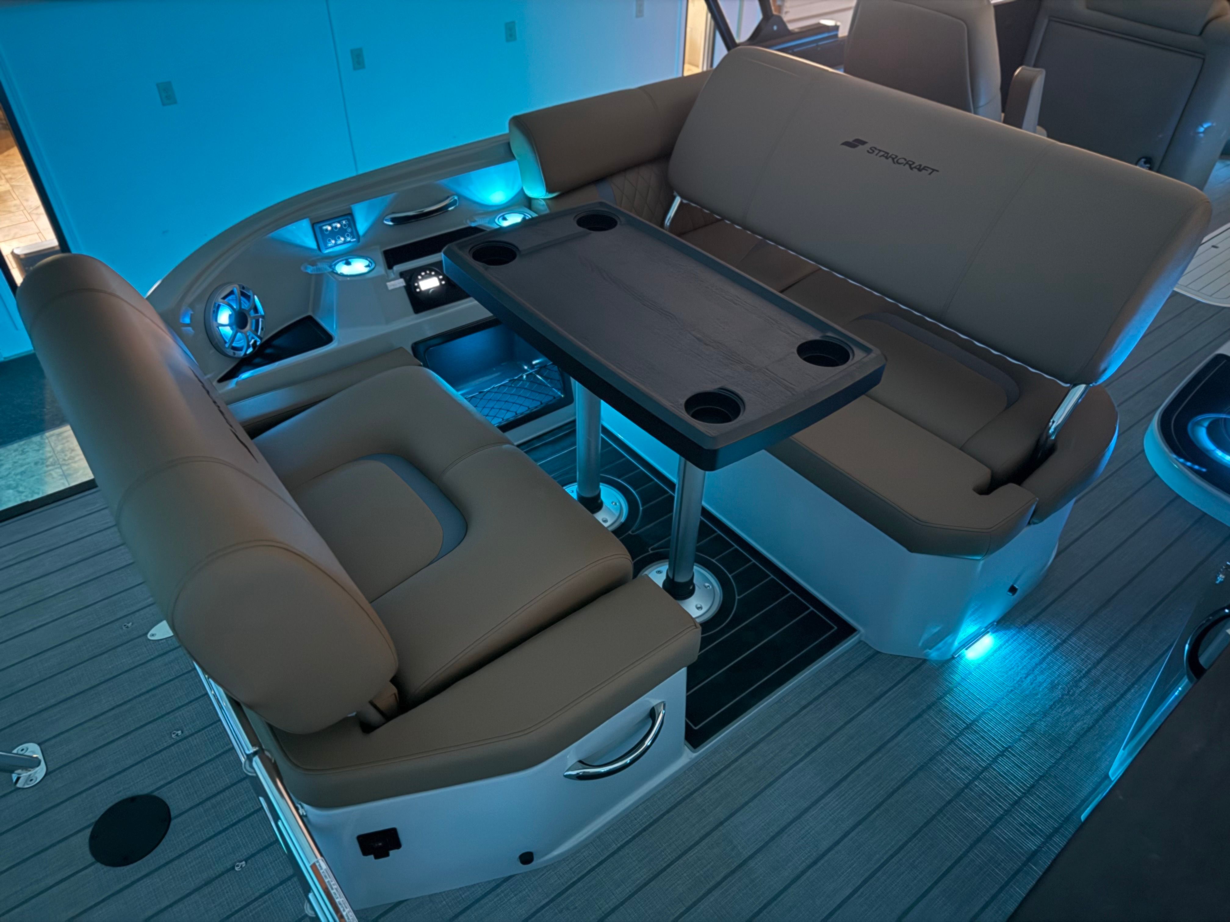 The 2025 Starcraft RX 23 DL DH is packed with special features that set it apart from other pontoon boats for sale. Enjoy the convenience and style of the 1500 Power Bimini Top in black with a matching frame, providing shade and protection at the touch of a button. The onboard entertainment experience is elevated by the Amp with Subwoofer Wet Sounds, delivering crisp, powerful audio for your favorite playlists. Set the mood with Babbito Underdeck Lights RGB and Cupholders Console RGB, both offering customizable lighting to match any occasion or time of day.Practical touches abound, such as the Battery Cable Extension and Bilge Light Harness in black, ensuring easy maintenance and visibility in all conditions. The Center Tube SD PR2560Stor 24x25w/ExtStrk enhances stability and storage, while the Console Mat Grey and Console with Platform Grey add a touch of sophistication and comfort underfoot. Every detail is designed to maximize your enjoyment and convenience, making this Starcraft boat for sale a true standout in its class.