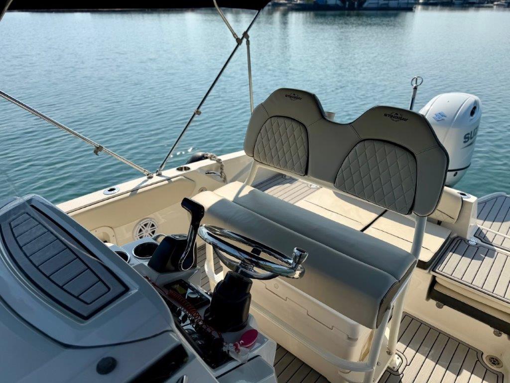 Whether you’re cruising with the family or heading offshore for a fishing trip, this boat is set up to handle both with ease. The layout is open, functional, and built for real-world use, with excellent visibility at the helm and comfortable seating throughout.