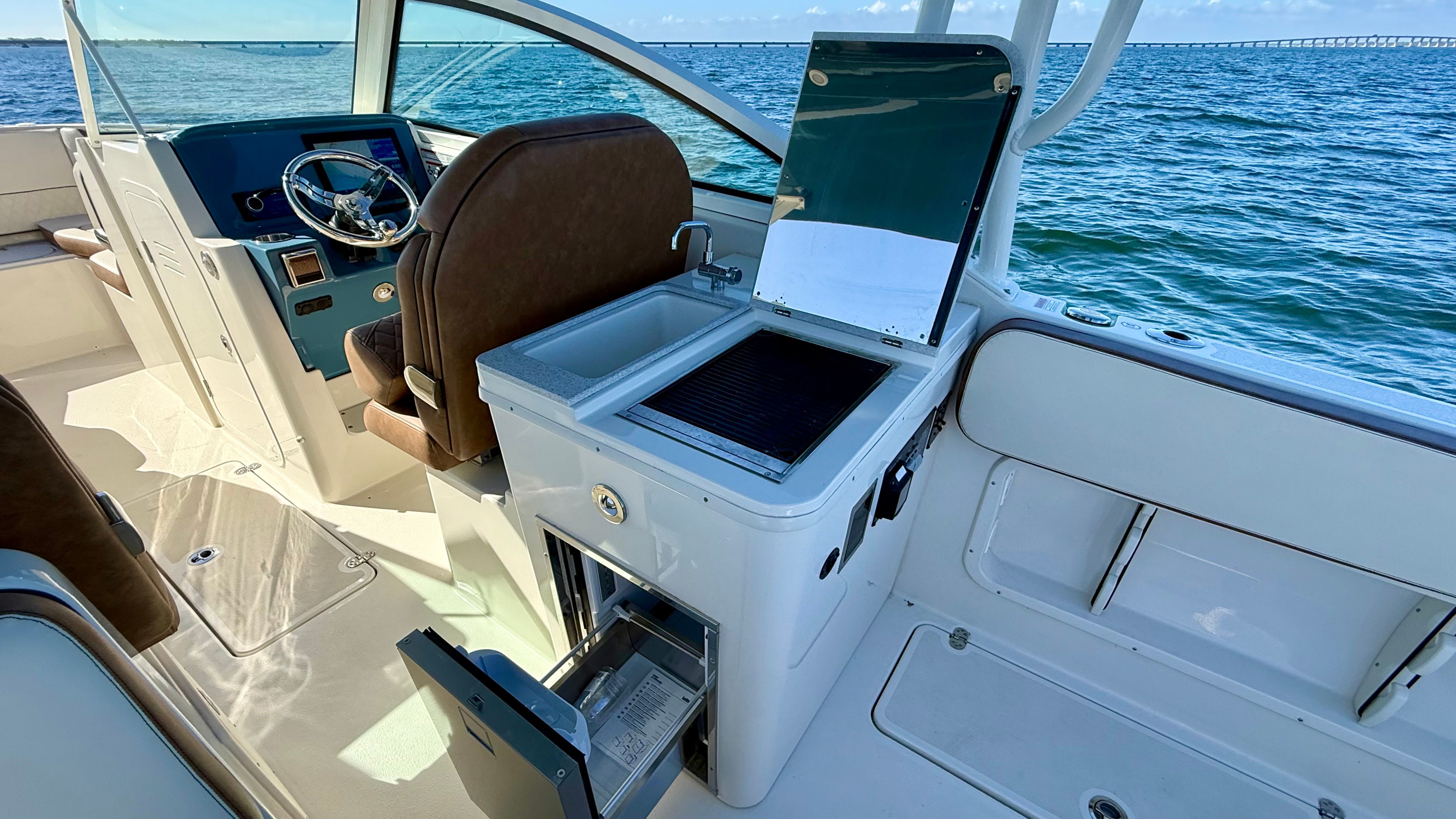 - Cockpit grill, sink, and refrigerator with inverter