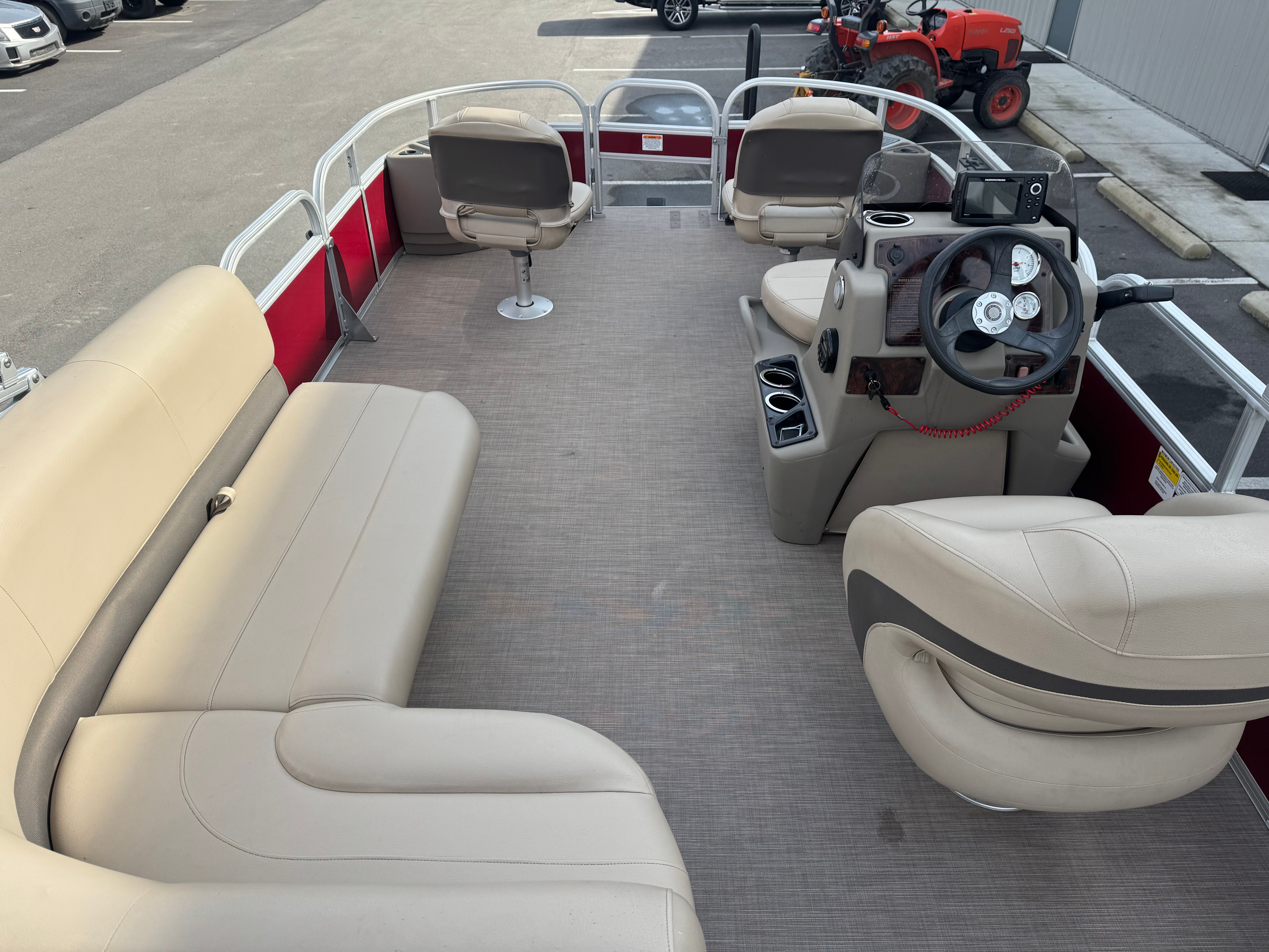 At the heart of this Sun Tracker boat for sale is a single, robust engine delivering 60 horsepower. This setup ensures smooth and efficient cruising, making it ideal for leisurely rides across lakes, rivers, and calm coastal waters. The 60 HP engine provides ample power for towing small inflatables, reaching your favorite fishing spots quickly, or simply enjoying a spirited ride with loved ones. The engine’s performance is matched by its reliability, offering peace of mind for both new and seasoned boaters. With this pontoon boat, you can expect a responsive throttle, steady handling, and an overall enjoyable ride every time you set out on the water.