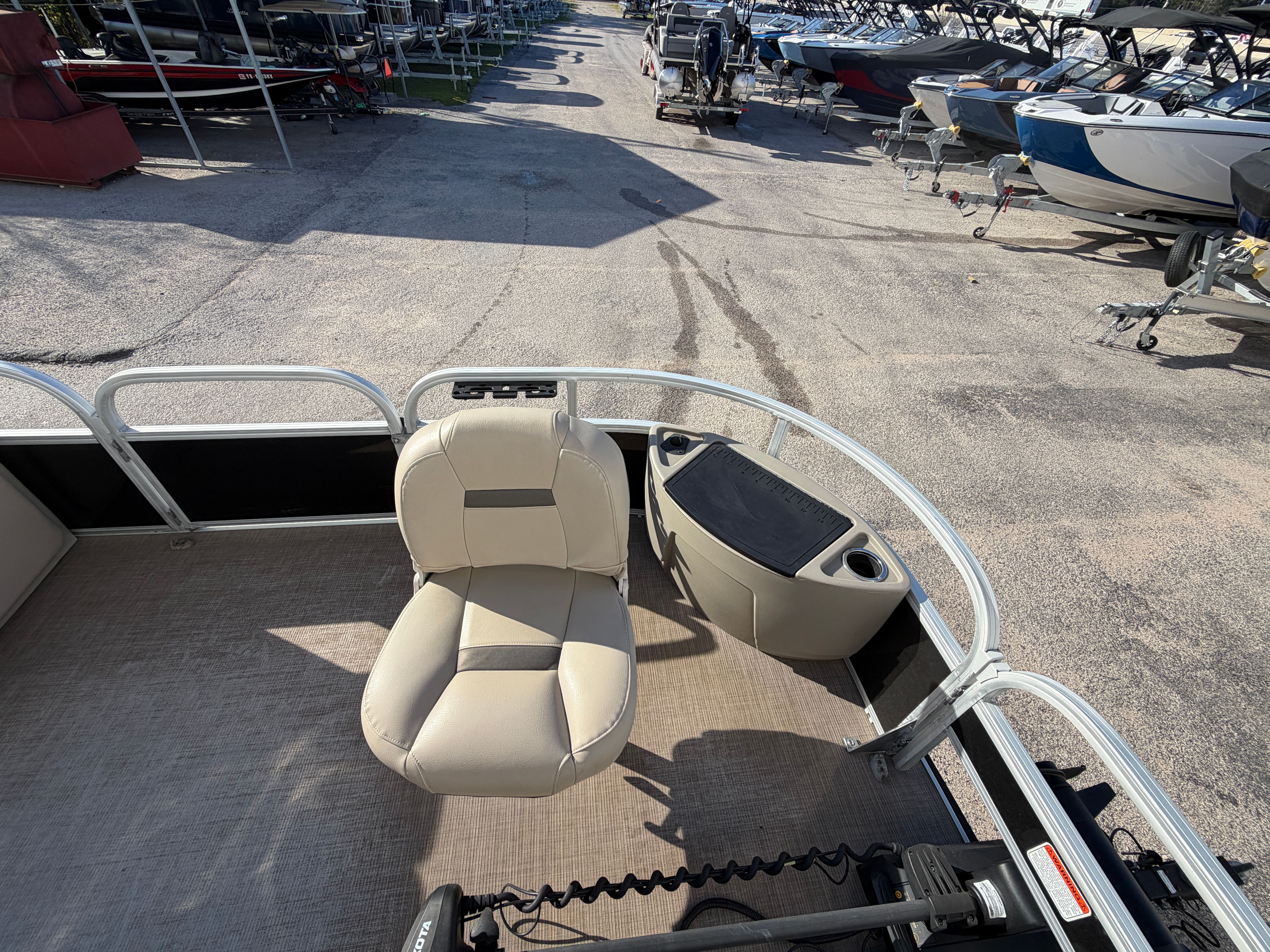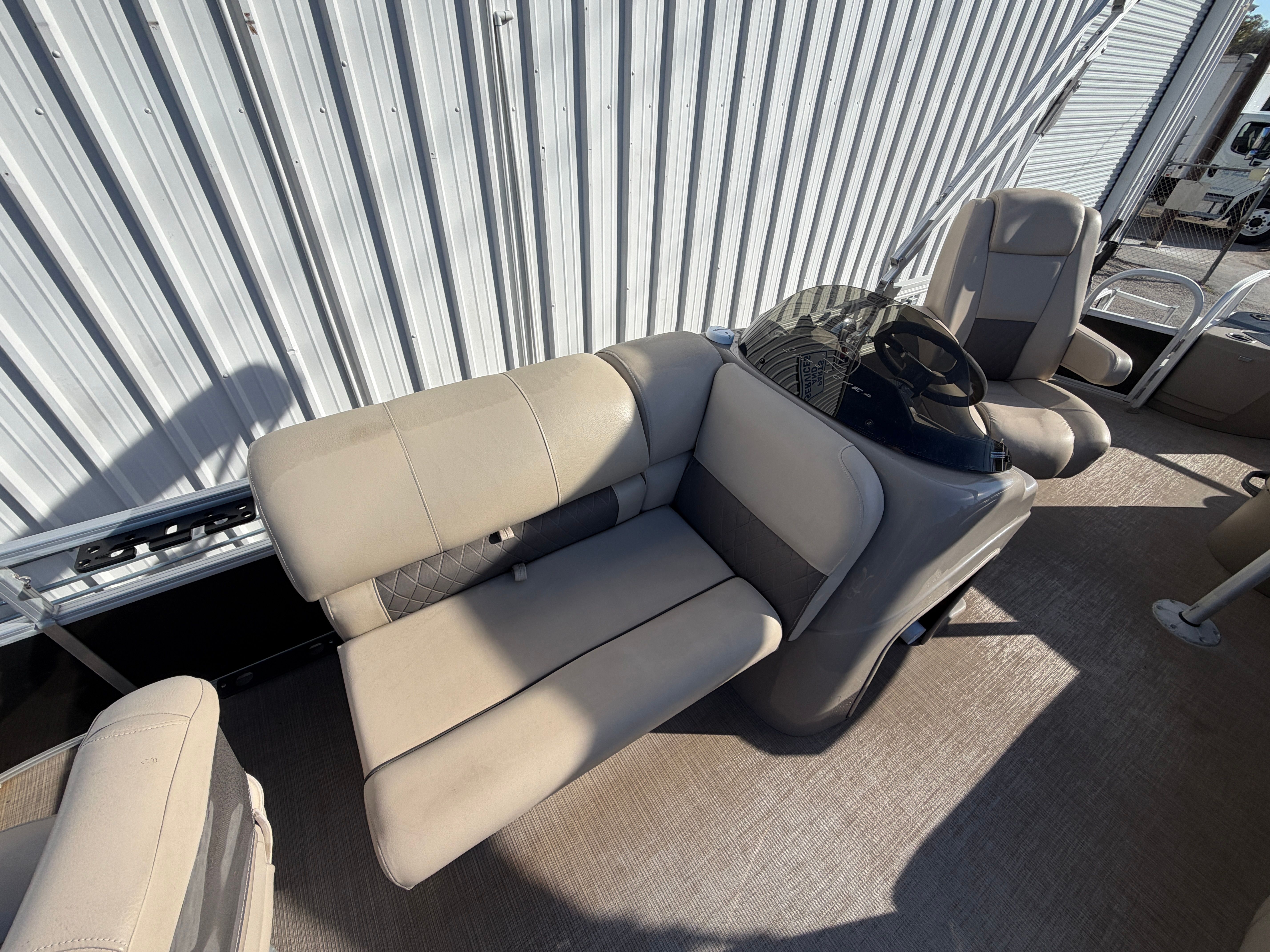 Powered by a single 90-horsepower engine, the Sun Tracker Fishing Barge 20 DLX delivers a smooth and responsive ride. Whether you are gliding across calm waters or heading out to your favorite fishing spot, this pontoon boat offers reliable performance and easy handling. The 90 HP engine strikes the perfect balance between fuel efficiency and power, making it ideal for both leisurely cruises and more spirited outings. With 130 engine hours, you can be confident in the engine’s longevity and continued performance.