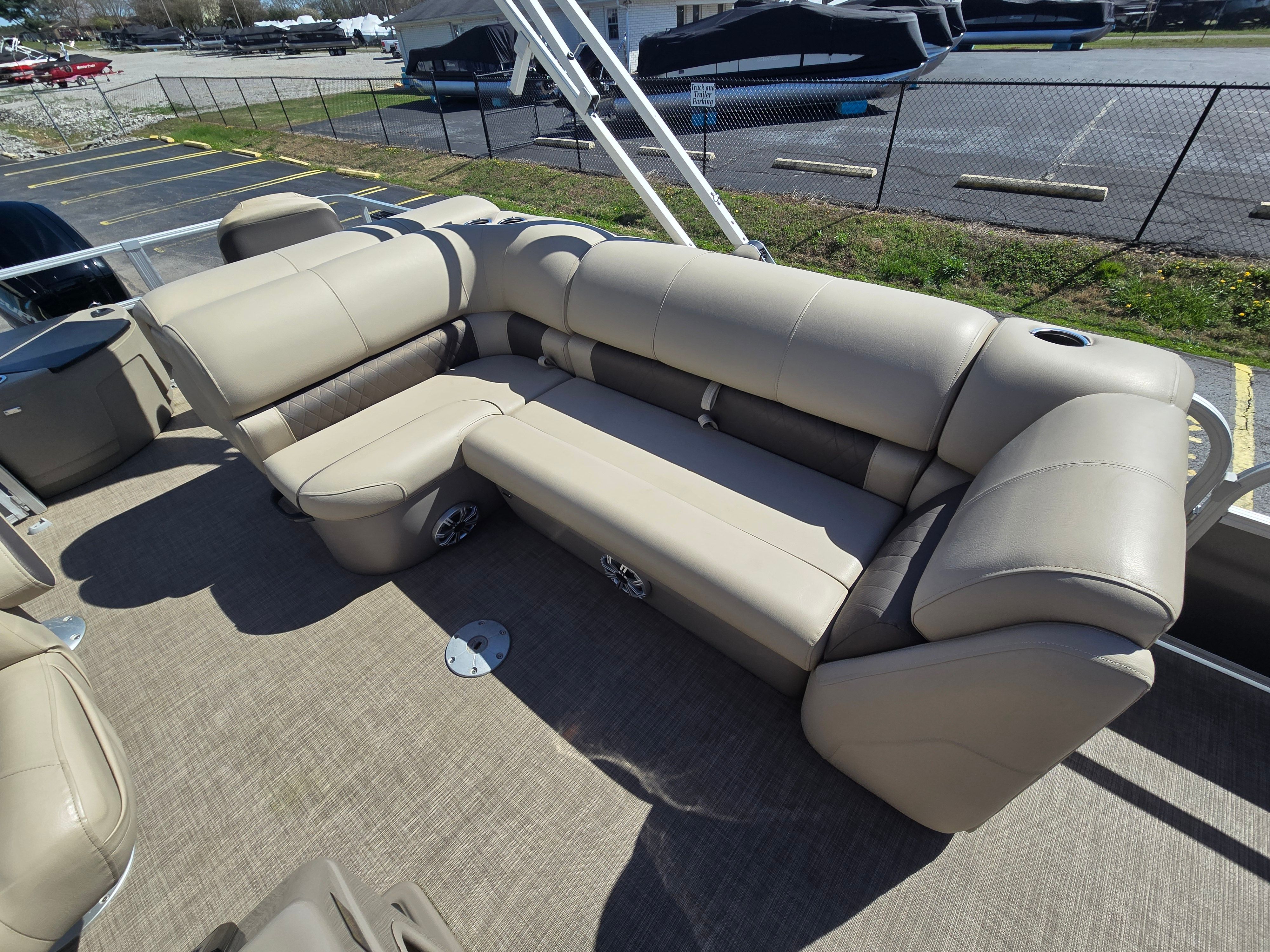 The Sun Tracker Fishing Barge 20 DLX is thoughtfully designed to maximize both comfort and functionality. Its spacious deck layout offers ample room for family, friends, and all your gear. The pontoon’s nearly 22-foot length provides plenty of space for socializing, fishing, or relaxing under the sun. The sturdy construction and high-quality materials ensure durability and longevity, making this pontoon boat a smart investment for years of enjoyment.Special features of the 2023 Sun Tracker Fishing Barge 20 DLX include a versatile deck plan that accommodates both fishing and leisure activities. The wide, stable platform is perfect for casting lines, setting up chairs, or enjoying a picnic on the water. With its comfortable seating arrangements, you and your guests can relax in style while taking in the scenic views. The boat’s intuitive layout makes it easy to move around, ensuring everyone on board has a great time.