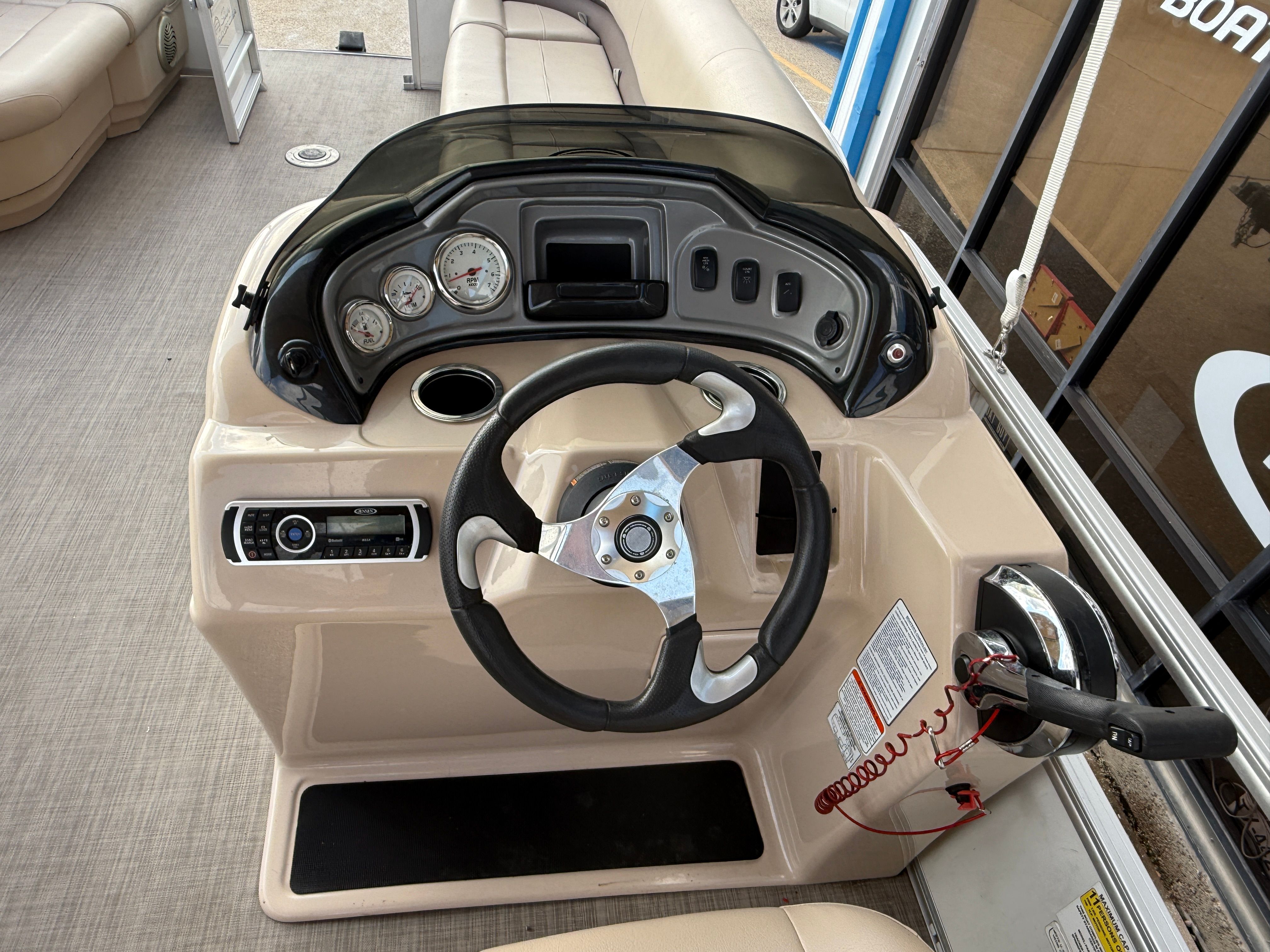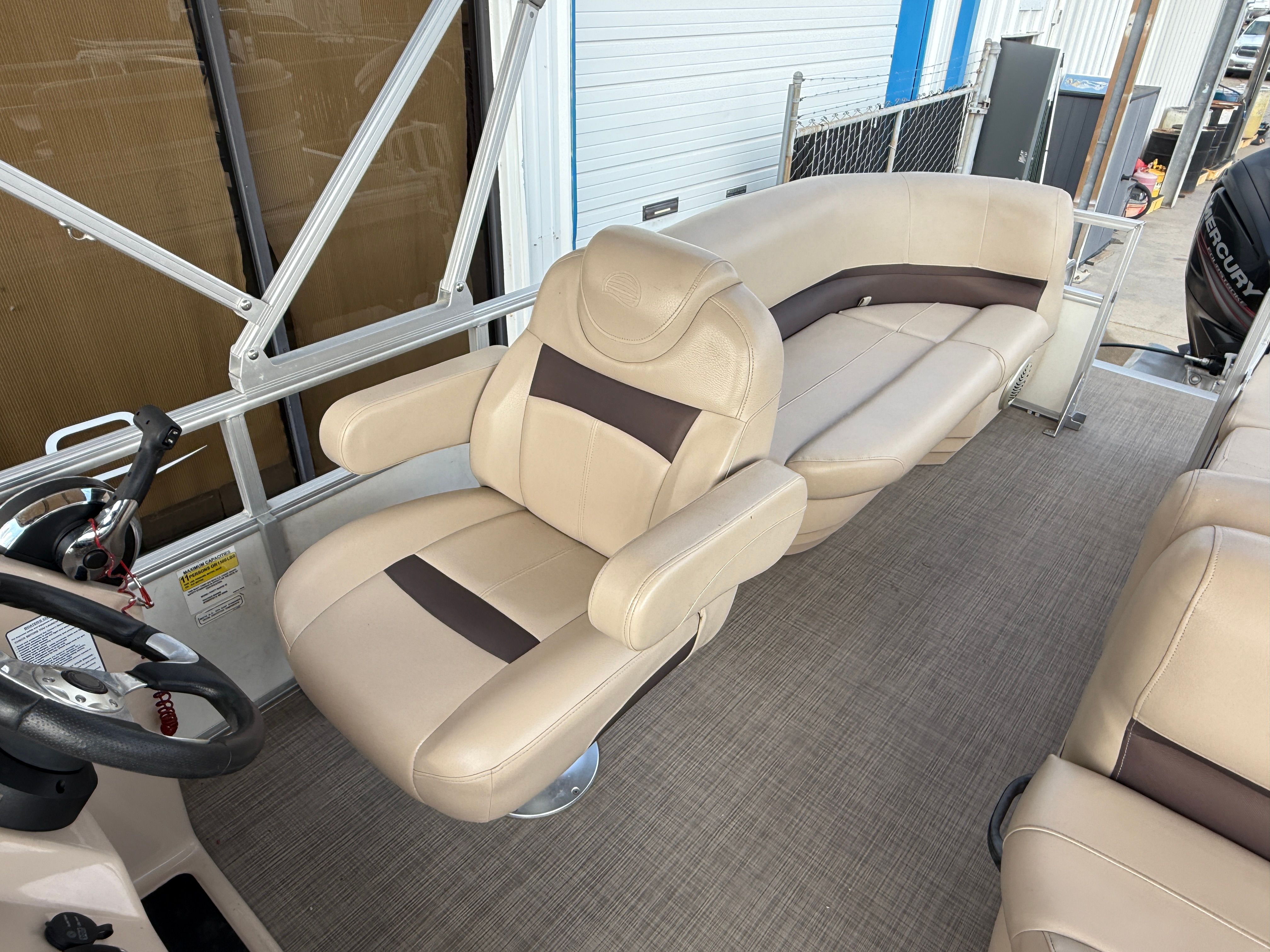 Powering this Sun Tracker Party Barge 22 is a single engine with an impressive 115 horsepower. This setup ensures smooth cruising, responsive handling, and enough power to tow water toys or reach your favorite swimming spot with ease. The engine’s reliable performance means you can focus on making memories, not worrying about getting there. Whether you are gliding across calm waters or navigating a busy marina, the Party Barge 22’s engine delivers a satisfying blend of efficiency and excitement.