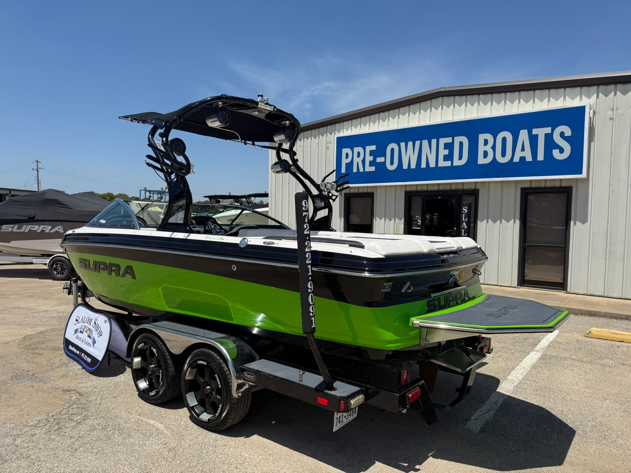 Founded in 1977, the Slalom Shop is North Texas' premier new and pre-owned dealership. Located just North of Dallas, we are a new boat dealer for Cobalt Boats, Barletta Pontoons, as well as Supra and Moomba performance tow boats. With a huge selection of pre-owned vessels from multiple manufactures, and a network of over 100 partner dealerships, we are sure to have exactly what you are looking for! Please give us a call today or stop by and let us show you how we can help you find the perfect boat!