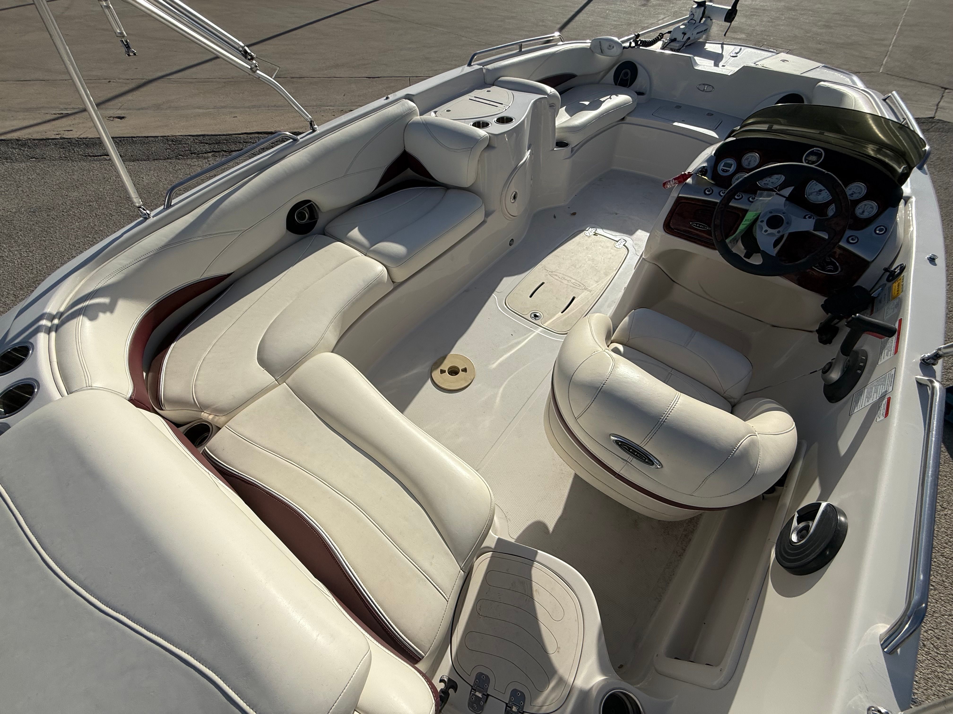 The Tahoe 215 XI deckboat is as practical as it is fun. Its manageable 21-foot length makes it easy to dock, trailer, and store, while still providing ample space for passengers and gear. The efficient single-engine setup helps keep fuel costs down, so you can spend more time on the water and less time at the pump. The deckboat’s smart design includes plenty of storage for life jackets, water toys, and other essentials, keeping the deck clutter-free and organized.This used deckboat boat for sale is ideal for those who want a low-maintenance, high-enjoyment vessel that is ready for adventure. Its durable construction and proven reliability mean you can focus on making memories, not worrying about upkeep.