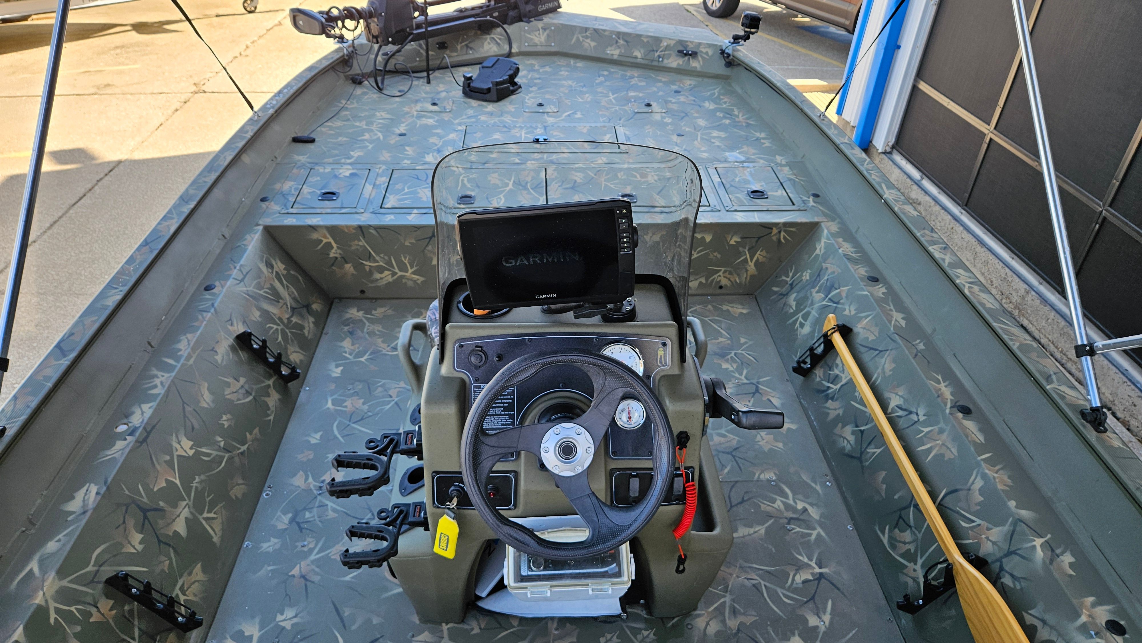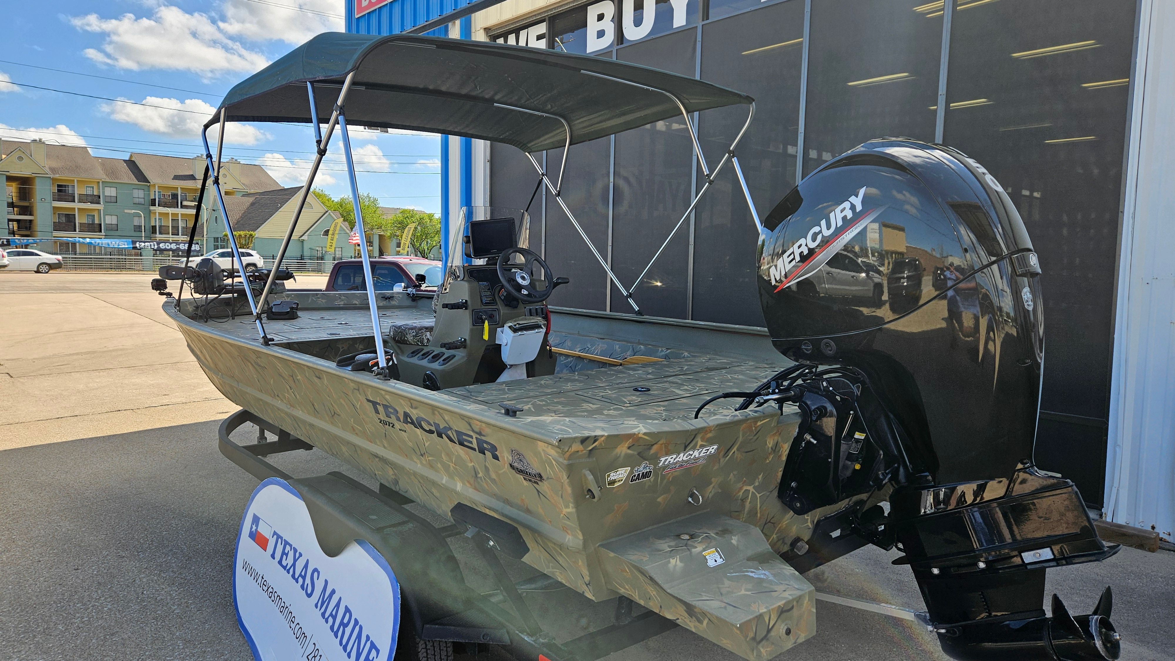 This Tracker boat for sale is designed with practicality in mind. The tandem axle trailer simplifies launching and retrieving the boat, while also providing secure storage when not in use. The Bimini top offers essential protection from the elements, making it easier to stay out longer and enjoy more of what you love.The Garmin electronics and trolling motor add a new level of convenience, allowing you to focus on fishing and fun rather than navigation and setup. The efficient 4-stroke Mercury engine not only delivers impressive power but also helps you make the most of every gallon of fuel, so you can spend more time on the water and less time at the pump.