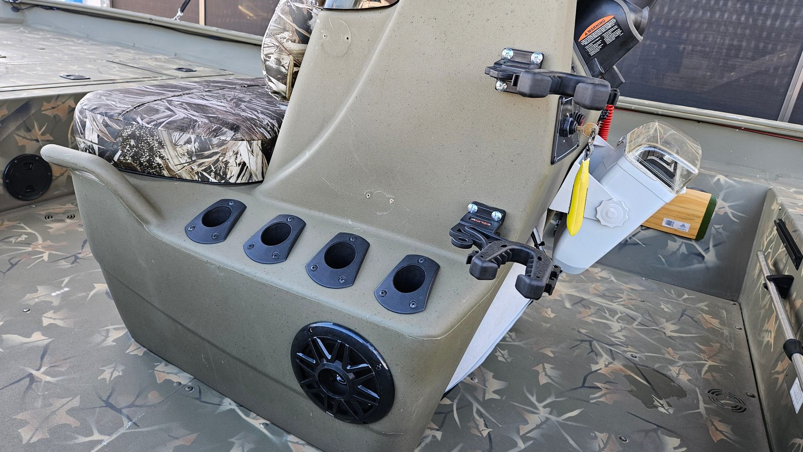 This used Tracker boat for sale comes loaded with special features designed to enhance your time on the water. The included Bimini provides much-needed shade on sunny days, allowing you to stay comfortable during long fishing sessions or leisurely cruises. The tandem axle trailer makes transporting your boat to and from the water a breeze, offering stability and peace of mind on the road.For serious anglers, the Garmin Force Trolling Motor and Garmin Electronics Package are game-changers. These advanced tools give you precise control and real-time data, helping you locate fish and navigate with confidence. The integrated stereo system lets you set the perfect soundtrack for your adventures, whether you’re relaxing with friends or celebrating a successful catch.