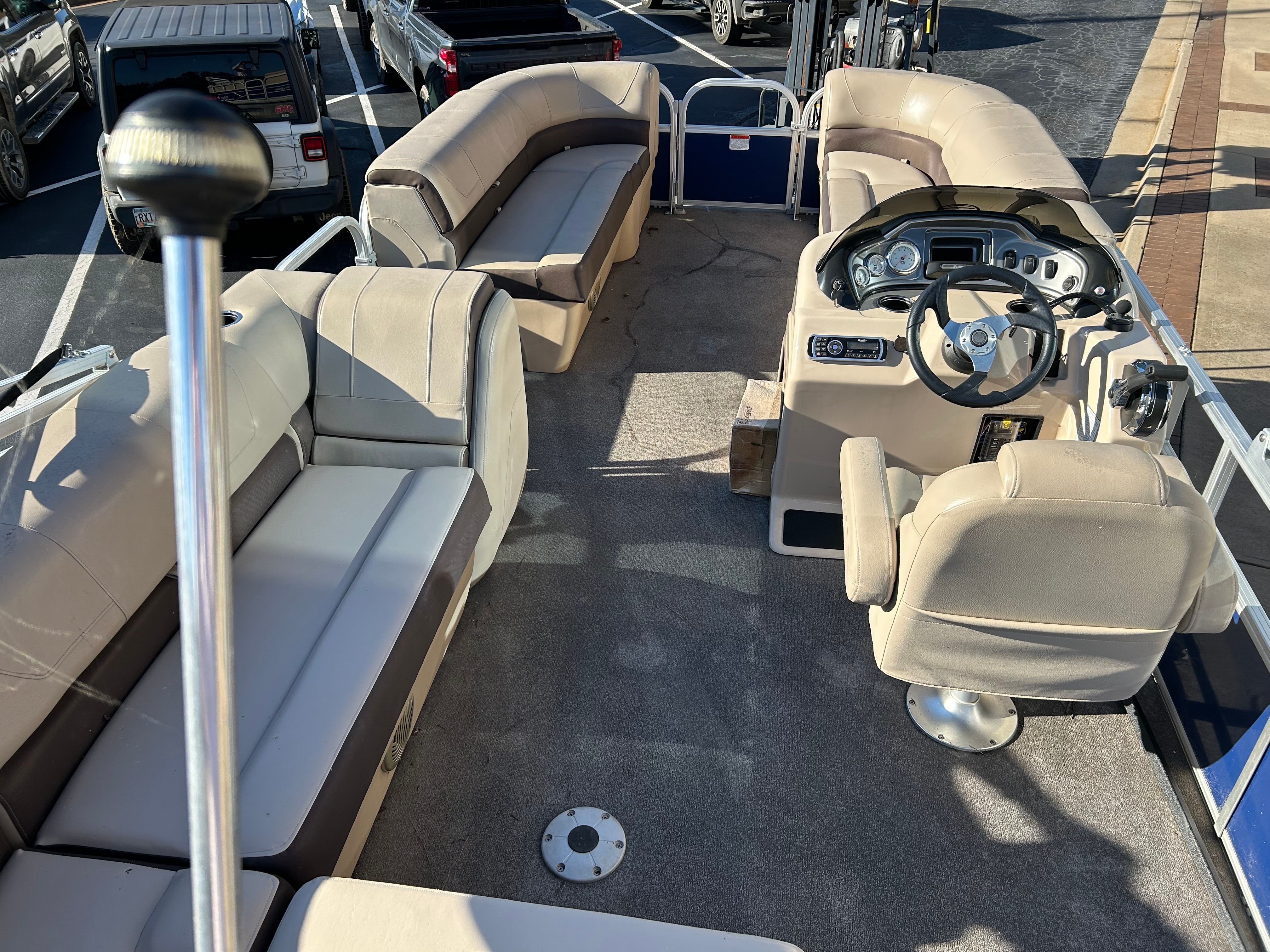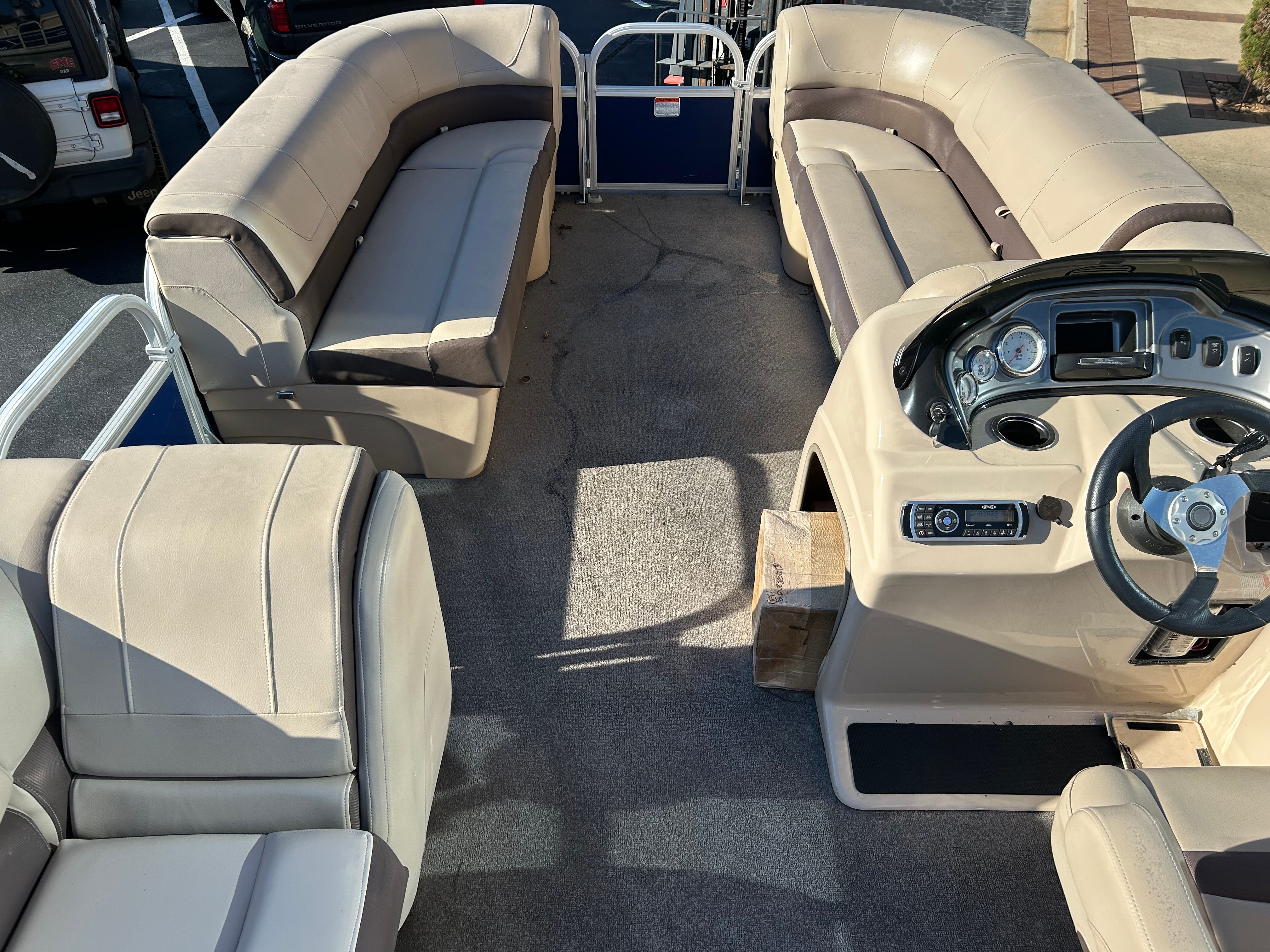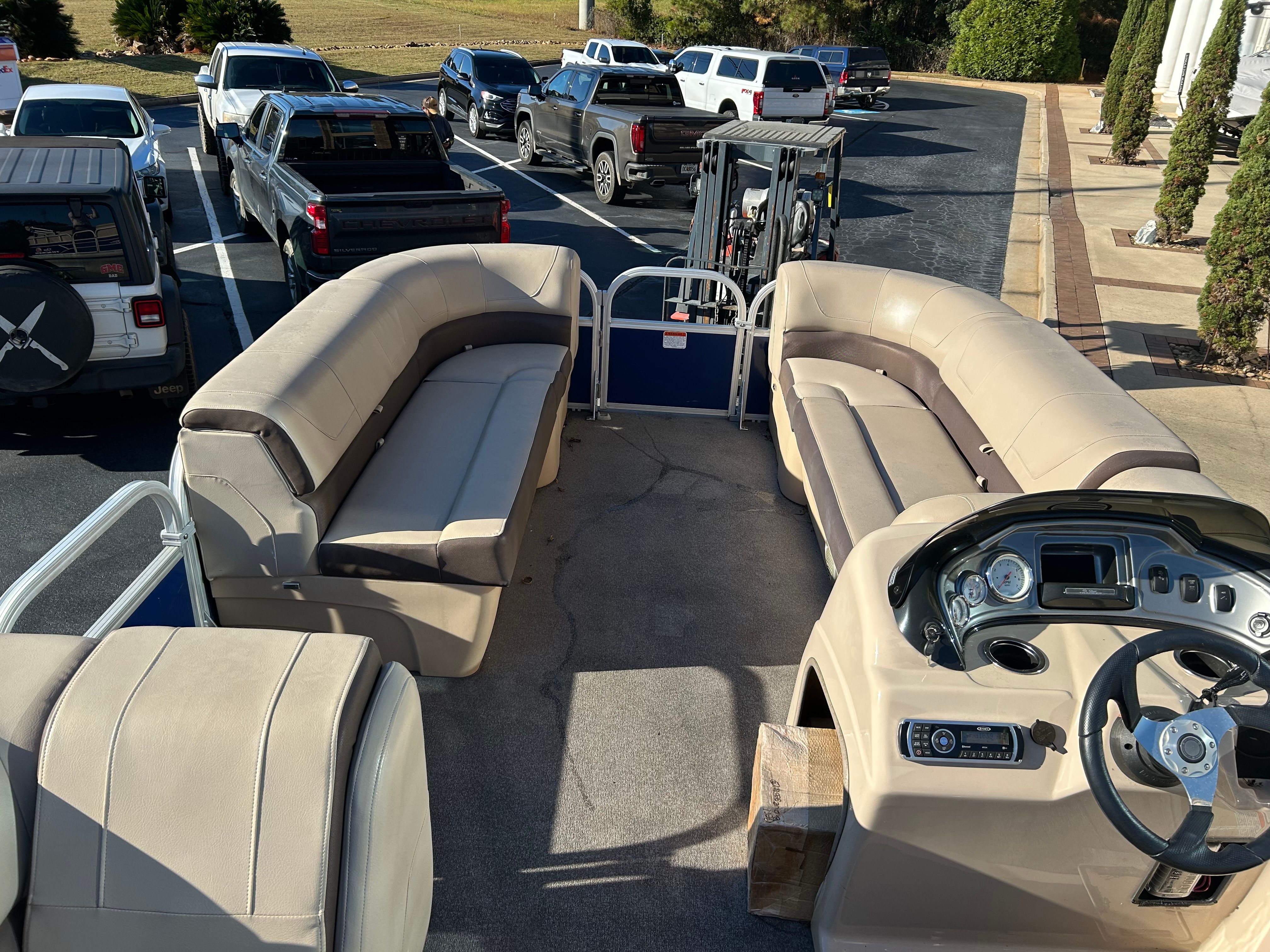 Powering this pontoon is a single engine with 90 horsepower and just 70 engine hours, offering a great balance of efficiency and excitement. The Tracker Party Barge 20 DLX is engineered for smooth cruising, responsive handling, and reliable performance, making it easy to navigate lakes, rivers, and bays. The 90-horsepower engine provides enough thrust for leisurely rides, towing water toys, or reaching your favorite fishing spots with ease. With low engine hours, you can be confident in the longevity and dependability of this used pontoon boat for sale.