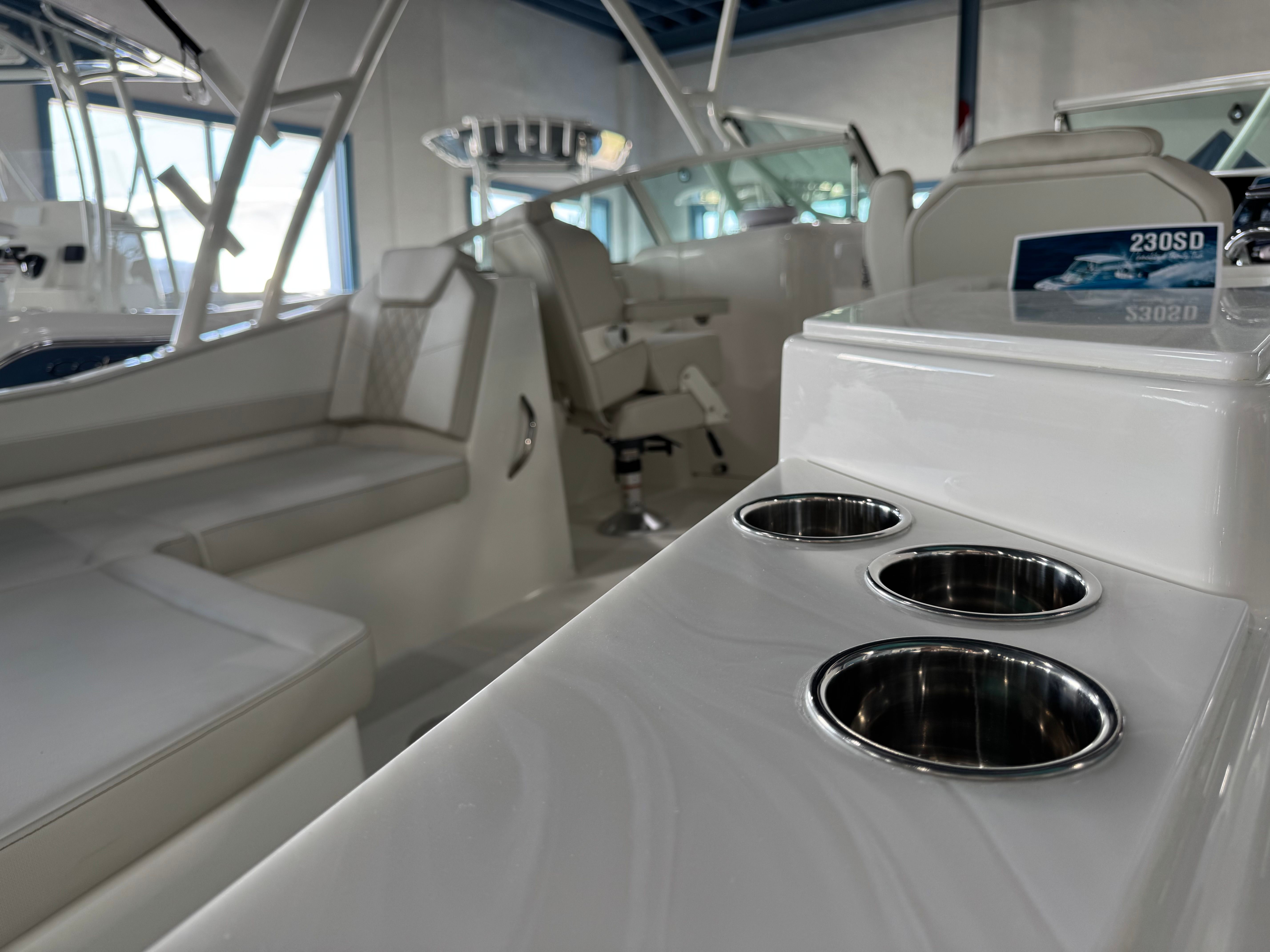 The World Cat 230 SD is designed with practicality in mind, making boat ownership easier and more enjoyable. The dual console configuration provides ample storage for gear, water toys, and personal items, keeping the deck clutter-free and organized. The boat’s manageable size and responsive handling make docking and maneuvering a breeze, even for less experienced captains.Fuel efficiency is another key advantage, thanks to the twin Yamaha engines that deliver impressive performance without sacrificing economy. Whether you’re planning a full day on the water or a quick sunset cruise, you can enjoy more time boating and less time refueling. The durable fiberglass hardtop offers protection from sun and rain, extending your boating season and enhancing comfort for all on board.