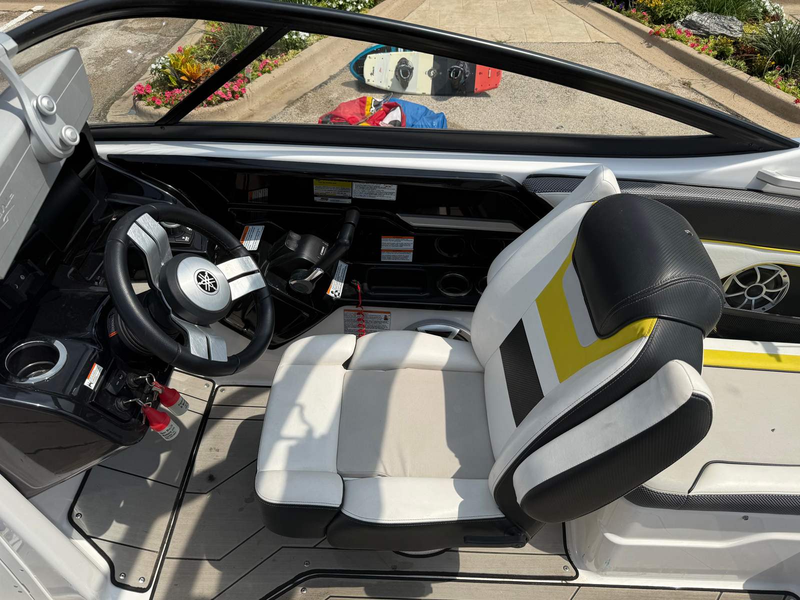 Power and precision are at the heart of the Yamaha 212X. Equipped with twin engines delivering a combined 360 horsepower, this jet boat for sale offers exhilarating acceleration and responsive handling. The dual-engine setup ensures smooth and balanced performance, whether you’re navigating tight turns or powering across open water.With 90 engine hours, the engines have been gently used and are ready to provide many more seasons of reliable operation. The jet propulsion system eliminates the need for exposed propellers, enhancing safety for swimmers and water sports participants. This Yamaha boat for sale is engineered for both speed and control, making it a standout choice for those who crave excitement and confidence on the water.